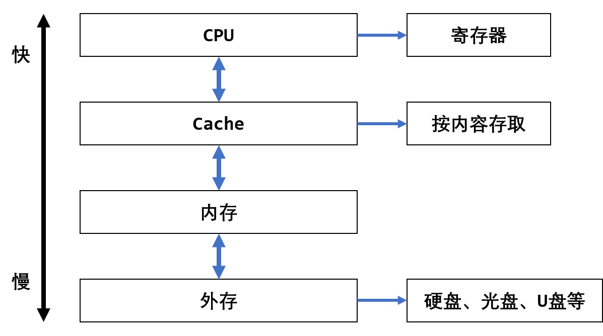 即 $平均时间=命中率读取一次Cache时间+(1-命中率)读取一次CPU时间$。